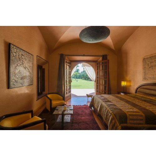 Prestation très hauts de gamme, marbre au sol, zellige finement travaillé, des plafonds ouvragés en bois, toute la menuiserie en noyer, climatisation gainable chaud et froid. Tres grande cuisine avec ses dependances.